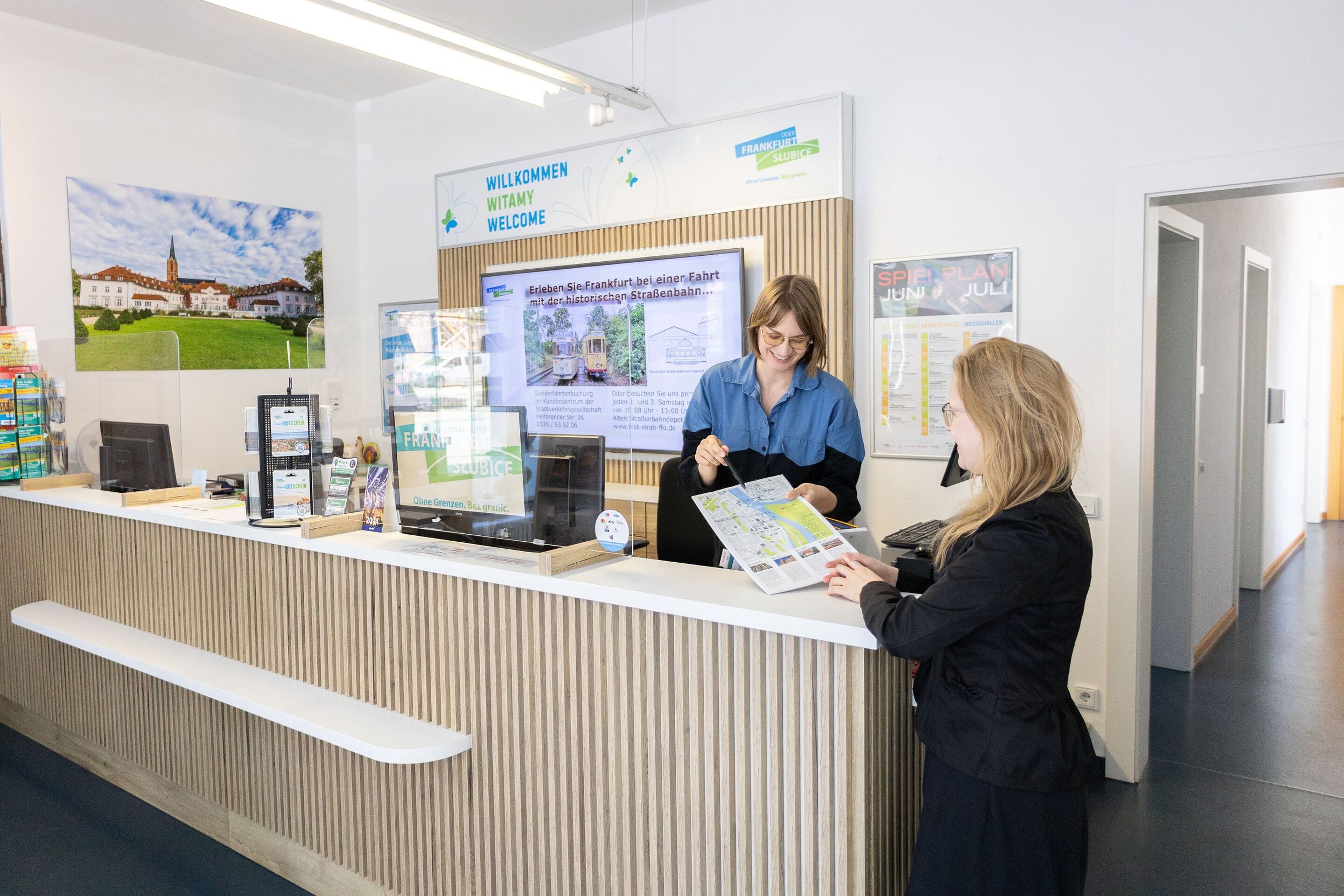 E-Bike laden in der Tourist-Information. Die Tourist-Information berät Sie gern und ist Ihr Ansprechpartner für alle touristischen Fragen! Sie hält ein umfangreiches Angebot für Sie bereit: Neben der touristischen Beratung und Information beidseits der Oder, der Vermittlung von Unterkünften, Stadtrundgängen, Kirchenführungen, thematischen Gruppenführungen erhalten Sie auch die jeweils aktuellen Veranstaltungstipps, Reservierungen und Tickets. Alles aus einer Hand! Wir laden Sie ein, im breiten Angebot von Stadt-, Rad- und Wanderkarten unser Brandenburger Land zu entdecken.