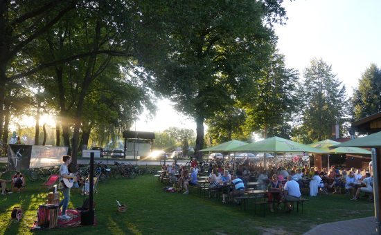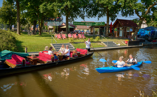 Direkt am Bootshaus befindet sich ein gemütlicher Biergarten mit Holzbackofen und Räucherecke. Spreewaldtypische Gerichte, deftige Haxe, saftiger Backschinken und frisch geräucherter Fisch werden in den Öfen zubereitet. Von Juni bis September jeden Dienstag Grill & Chill