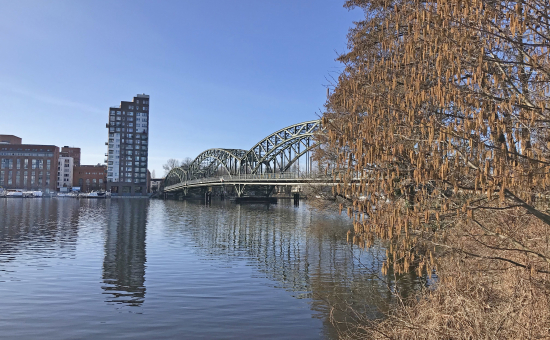 Mitten im Spandauer See liegt die Insel Eiswerder. Zur Hälfte bewaldet und mit ihren kleinen Bootsclubs wirkt sie heute sehr friedlich. Ein genauer Blick auf die ausladenden roten Backsteingebäude verrät aber ihre rüstungsindustrielle Vergangenheit. 1829 zog das geheime Brandraketen-Laboratorium aus der Zitadelle um zu seiner Schwester auf der Insel, dem drei Jahre zuvor errichteten Feuerwerkslaboratorium. Eiswerder wurde in der Folge zu einem bedeutenden Militärstandort mit Fabriken zur Herstellung von Pulver, Patronen und Munition, einer Artilleriewerkstatt und einer Geschützgießerei. Ende des 19. Jahrhunderts wurden die Rüstungsanlagen über eine Eisenbahnbrücke an die Berlin-Hamburger Bahn angeschlossen. Die Betriebe selbst nutzten zum Teil Werkbahnen mit einer Spurweite von gerade einmal 60 cm. Wegen der Explosionsgefahr kamen feuerlose Dampfspeicherlokomotiven zum Einsatz. Zu Zeiten des geteilten Deutschland wurde es auf der Insel wieder geheim. Die Industrieanlagen waren stillgelegt und der West-Berliner Senat lagerte hier seine erweiterten Senatsreserven für die Versorgung der Bevölkerung im Fall einer Belagerung. Seit der deutschen Wiedervereinigung entwickelt sich die Insel Eiswerder nach mehreren Umbauten mehr und mehr zu einem attraktiven Standort für Kunst- und Medienbetriebe mit Büros, Studios und Gastronomie. Zuletzt ziehen auch immer mehr Anwohner auf die 14 Hektar große Insel um.