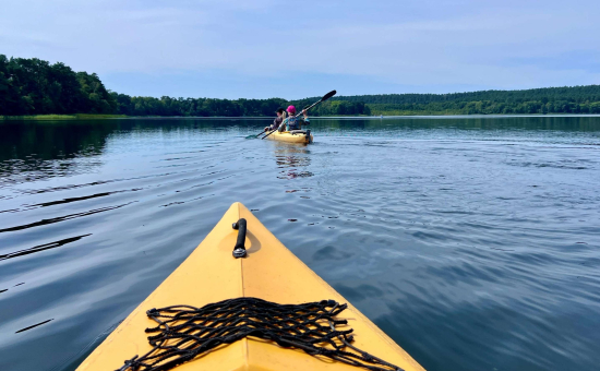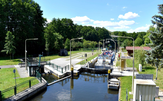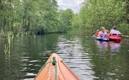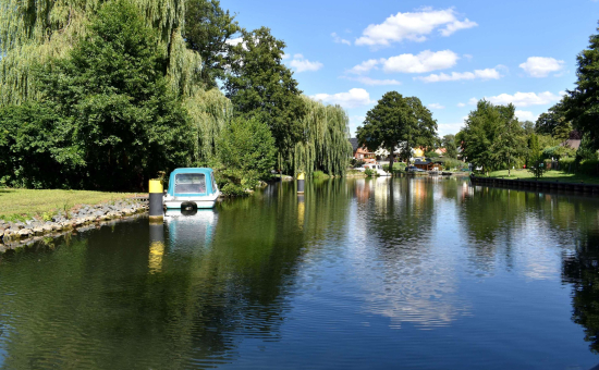 Diese Kanutour führt vom Storkower See zur Glubigseenkette – immer entlang des Naturparks Dahme-Heideseen. Dieser besticht durch seine urigen Kanäle, schmalen Flüsse und kaum entdeckten Seen. Eine artenreiche Flora und Fauna begegnet dem Wasserwanderer auf dieser Tour. Zwei Schleusen müssen passiert werden. An verschiedenen Badestellen und natürlich in Storkow (Mark) besteht die Möglichkeit zum Landgang. Start / Ziel: Storkow (Mark) Länge / Dauer: 14 Kilometer, 4 Stunden Verlauf: Storkow (Mark), Großer Storkower See, Wendisch Rietz, Scharmützelsee, Glubig-Melang-Fließ, Großer Glubigsee, Springsee Nautische Informationen: Ab Storkow (Mark) immer ufernah, weiter Storkower Kanal bis Schleuse Wendisch Rietz (Selbstbedienungsschleuse), nach der Schleuse rechts halten bis Schleuse Glubigsee (Betriebszeiten beachten), nach der Schleuse nur noch muskelbetriebene Boote An- / Abreise: ÖPNV: Ab Berlin Hauptbahnhof mit dem RE2 (Cottbus) bis Königs Wusterhausen, dann weiter mit dem RB36 Frankfurt (Oder) bis Storkow (Mark) PKW: Ab Berlin über die A10 und A12 bis Storkow (Mark) Wegbeschreibung Die Kanutour beginnt entweder neben dem Strandbad am Storkower See, am Strandbad Karlslust oder beim Bootsverleih "Wolfstouren" in Wolfswinkel. Ein Besuch der historischen Burg Storkow (Mark) sollte auf jeden Fall eingeplant werden, denn es gehört zu den sehenswertesten Orten der Region. Der Storkower See ist bei Wasserfreunden als beliebtes Motorboot- und Segelrevier bekannt. Der längliche See wird in Richtung Wendisch Rietz überquert. Ein besonderes Highlight ist der Blick auf das 1903 erbaute Jagdschloss Hubertushöhe. Dort besteht die Möglichkeit anzulegen, um den hier entstehenden Kunst- und Kulturpark zu erkunden. Bevor es durch einen Kanal zur Südspitze des wunderschönen Scharmützelsees geht, wird die erste Selbstbedienungsschleuse in Wendisch Rietz passiert, bevor es durch ein Fließ in den Großen Glubigsee geht. Dort befindet sich die Schleuse am Fischhaus, die zur Zeit außer Betrieb ist. Das Kanu muss hier umgetragen werden. Auf Wunsch kann das Kanu von "Wolfstouren" an der Glubigseeschleuse abgeholt werden. Die Paddeltour auf dem Spring- und Glubigsee ist besonders ruhig und idyllisch, da hier keine Motorboote fahren dürfen. Tipps: Storkow (Mark): Burg, Binnendüne, Salzwiesen, Aussichtsturm, MitMachPark Irrlandia Wendisch Rietz: Familien- und Erlebnispark Scharmuntzelland mit Streichelzoo, Minigolfanlage, Keramikatelier Karten / Literatur: Rad-, Wander- und Freizeitkarte Scharmützelsee, 5,90 €, Maßstab 1:25.000 Mit Wasserwegen und Tiefenlinien im Gewässer. Erhältlich in den Tourist-Informationen Bad Saarow und Wendisch Rietz.